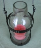 雑貨屋で買ったガラス瓶のランプに入れて吊るしています。
